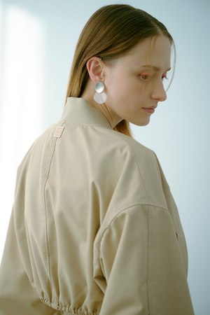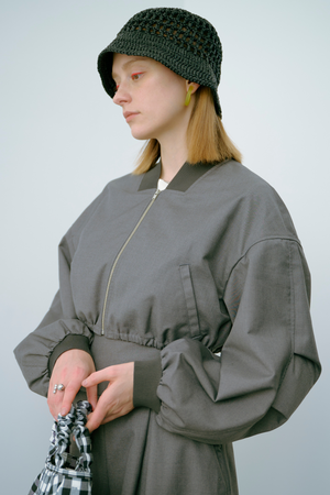 ・衿と袖口には、すっきりとした糸のニット素材を採用