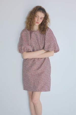 よく見ると小花が散りばめられたジャカード織の生地は、しっかりとハリがあるので立体的で構築的なシルエットにデザインしました。