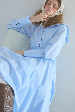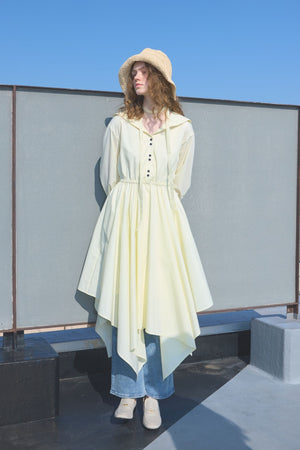 ありそうでなかったセーラーカラー衿と、ランダムな裾のラインは、他に見ないインパクト大のデザインです。