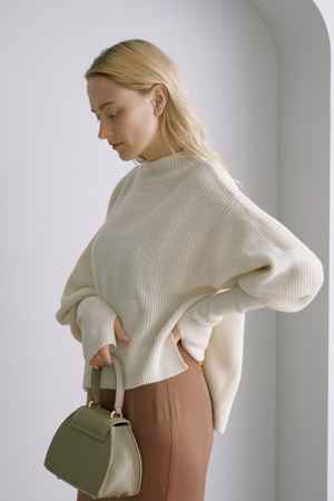 ・腕を細く長く見せてくれる、ボリュームパフ&ロングリブ袖