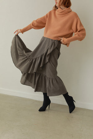 腰回りはスッキリと裾に向かってボリュームが出るシルエットで主役級の存在感。
