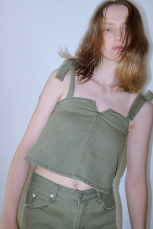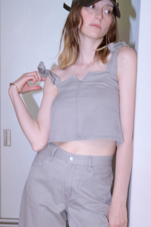 ・使いやすい絶妙なニュアンスカラーのカラーデニム調ビスチェ