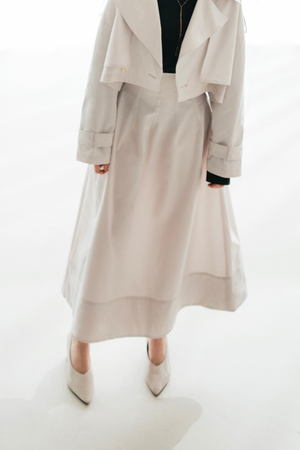 ・ウエストから腰回りにかけての立体的なダーツ仕様により細見え&脚長効果
