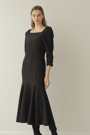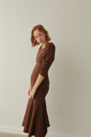 身体のラインを綺麗に見せてくれるよう細部までこだわった細見えマーメイドワンピース。