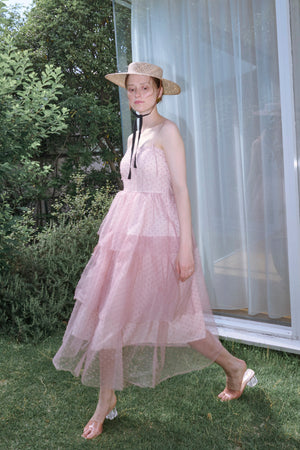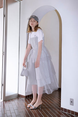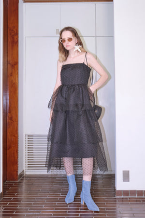 ・ドットのステッチが施された繊細なオーガンジーの生地を贅沢に使用し、更に3段のフリルディテールが可愛いデザイン