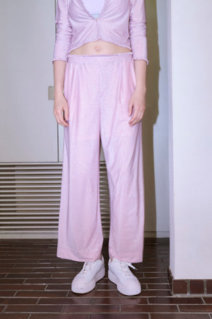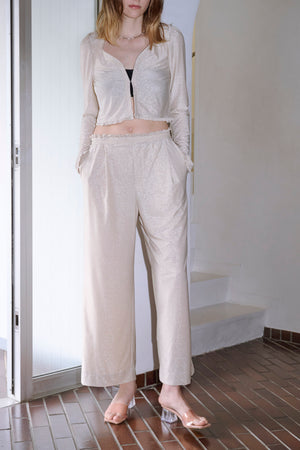 ・程良いラメ感で高級感があり、様々なスタイリングにマッチする万能パンツ