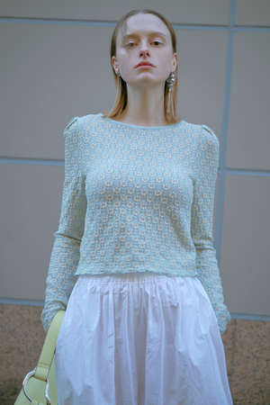 ・よく見るとフラワー柄になっていて程よく透け感があるので、ワンピース等のインナー使いでのレイヤードはもちろん、1枚でも様になる