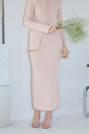 ・全体的にクシュっとしたシャーリングが施されている素材を使用したペンシルスカート