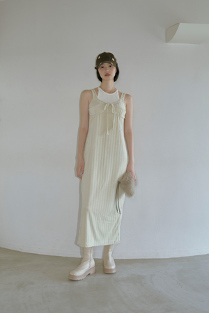 ・同素材で展開するワンピースとのセットアップコーディネートがおすすめ